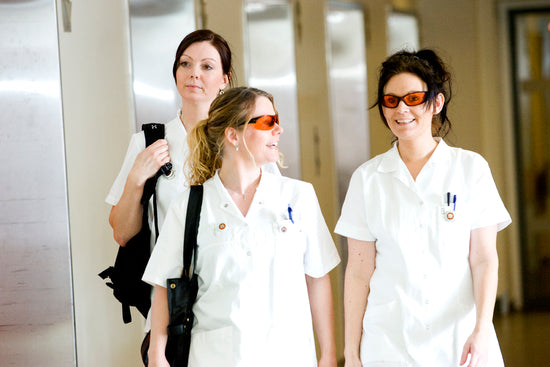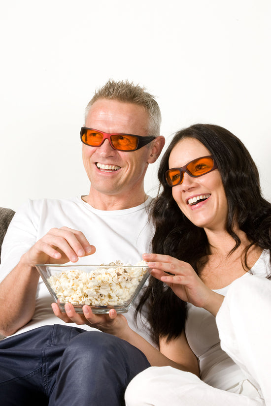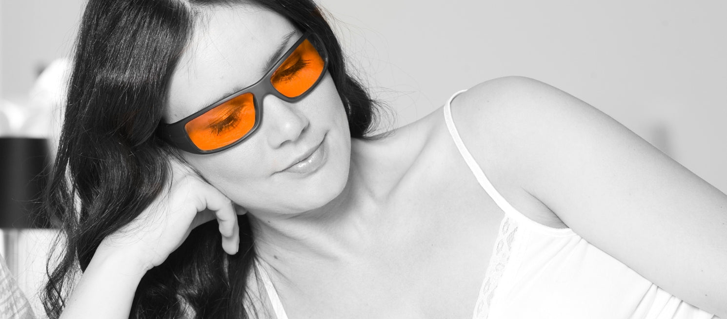 Sleep glasses work by filtering out the blue light in the light spectrum (446-477 nanometers). The sleep glasses from MelaMedic remove 100% of the blue light and a little of the green light up to 530 nanometers. The absence of blue light is detected by special photoreceptors in the retina of the eye, which pass this information on to the brain's internal clock. The internal clock processes this information and sends a signal to the pineal gland to produce melatonin.